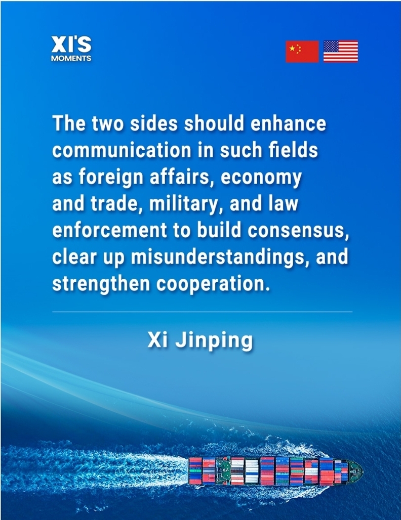 1일 중국 관영 차이나데일리(China Daily)에 따르면, 시 주석은 두 나라가 대립보다 협력을 선택해야 하며, 소통을 통해 신뢰를 구축하고 상호 존중의 원칙 위에서 공존해야 한다고 말했다.
