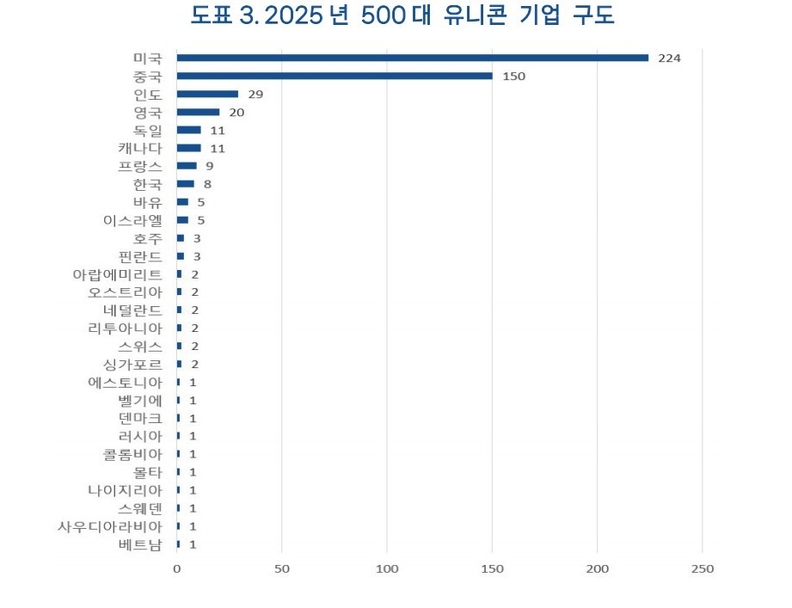 더지엠뉴스 박소영 기자 | 글로벌 비상장 혁신 기업의 지형 변화를 집약한 <2025 글로벌 500대 유니콘 기업 보고서>가 공식 발표됐다. 이 보고서는 전 세계 유니콘 기업의 분포와 산업 구조, 기술 방향을 종합 분석하며 글로벌 혁신 자본의 이동 경로와 산업 권력 지형 변화를 구체적으로 드러냈다.