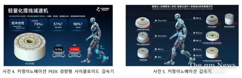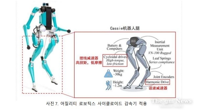 특히 정밀 제어가 필요한 보행 구성에서는 감속기의 기계적 오차가 균형 유지와 충격 흡수에 직접 영향을 주기 때문에, 감속기의 치형 가공 정밀도와 내구성이 전체 로봇 동작 안정성을 결정하는 중요한 요소로 제시된다.