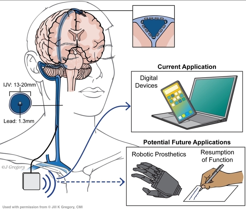 이번 장치는 배터리를 포함한 핵심 전자 모듈을 가슴 피부 아래에 이식하고, 뇌와 연결된 신경 신호는 무선으로 송수신하도록 설계됐다.