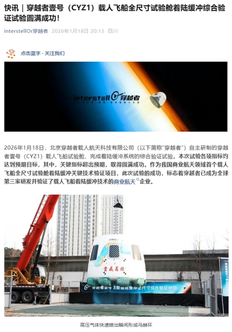 이로써 촨웨즈는 유인우주선 착륙 완충 기술을 실제로 검증한 세계 세 번째 상업 우주기업 반열에 이름을 올리게 됐다. 이 과정에서 상업 우주관광을 전제로 한 안전성 검증과 반복 시험이 동시에 진행되고 있다.