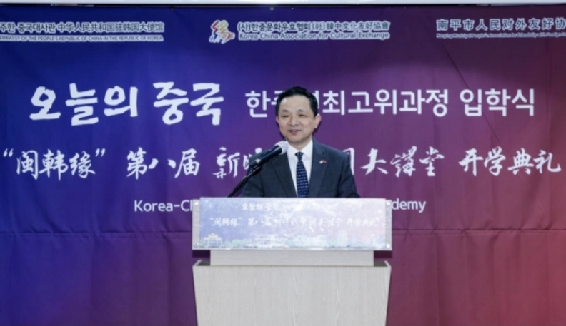 8일 주한중국대사관에 따르면, 다이빙 대사는 제13기 한중 최고 지도자 아카데미 개강 연설에서 최근 국제 질서가 중동 전쟁과 미중 갈등, 관세 충돌, 지정학 위기로 한층 불안정해졌다고 진단하면서도 중국은 이미 오래전부터 이런 변화를 예견하고 대비해 왔다고 밝혔다. 그는 시진핑 국가주석이 제시한 ‘백년 만의 대변국’ 판단을 거론하며, 최근 세계가 혼란기와 격변기에 들어섰다는 점은 더 이상 부인하기 어려운 현실이 됐다고 말했다. 그러면서 중국은 변화에 수동적으로 끌려가는 것이 아니라 발전에 집중하면서 위험을 줄이고 기회를 포착하는 방식으로 대응해 왔다고 설명했다.