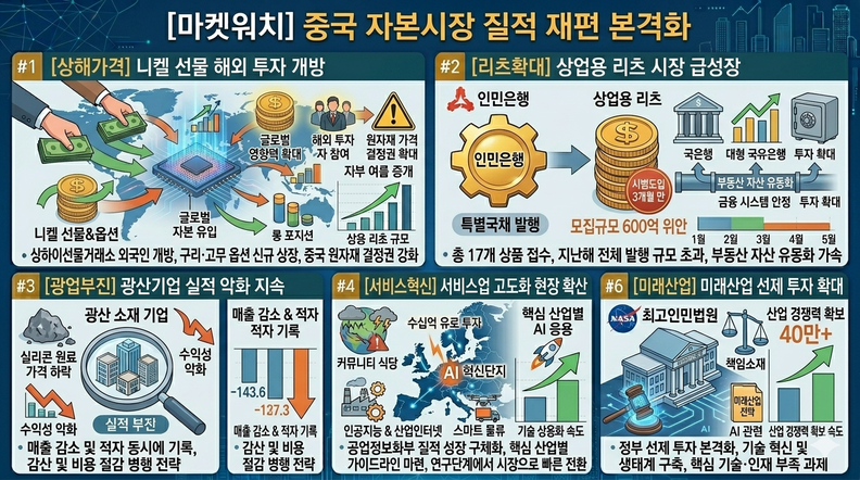 상하이선물거래소가 니켈 선물과 옵션 시장을 외국인에게 개방하면서 국제 자본 유입을 통해 ‘상하이 가격’의 글로벌 영향력 확대를 추진했다. 동시에 국제 구리 옵션과 고무 옵션도 신규 상장되며 해외 투자자의 참여가 허용됐다. 이는 중국 원자재 가격 결정권 확대 전략의 핵심 조치로 이어졌다.