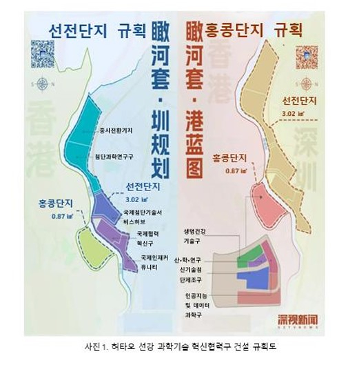 [더지엠뉴스] 홍콩특별행정구정부(香港特别行政区政府)와 선전시인민정부(深圳市人民政府)는 2017년 1월 공동 업무협(MOU)을 체결하고 허타오 선강 과학기술 혁신협력구(河套深港科技创新合作区, 이하 협력구) 건설을 가동했다.