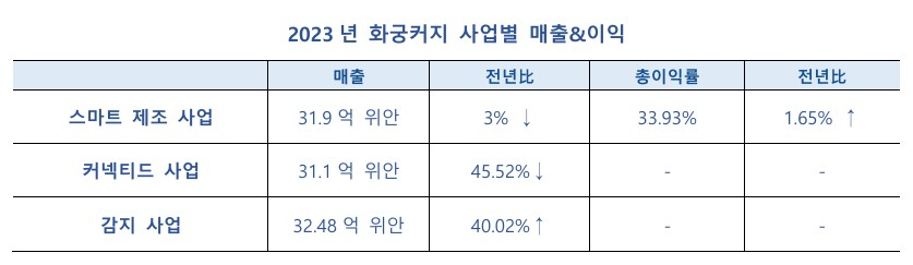 이 가운데 스마트 제조 사업 매출은 31.9억 위안으로 전년 대비 3% 감소한 반면, 총이익률은 33.93%로 전년도 보다 1.65% 상승했다.
