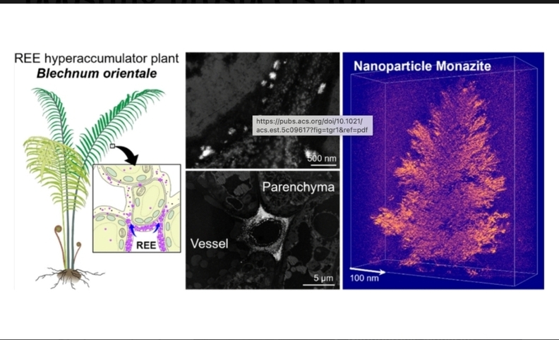 식물이 희토류를 잎의 관다발과 표피 조직에 축적한 뒤 나노입자 형태로 침전시키고, 시간이 지나면서 미세한 광물 구조로 결정화한다는 것이다.