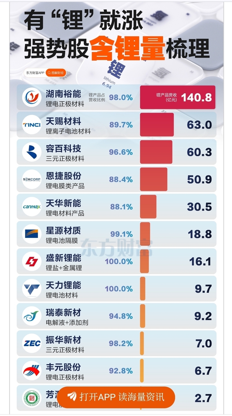 리튬 가격의 급등세가 이어지자 리튬 소재를 다루는 종목 전반이 단기간에 큰 폭으로 올랐다.