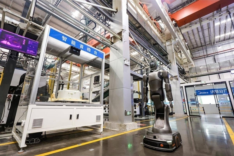 후베이 징저우에 위치한 메이디 세탁기 공장에서는 로봇이 제품 부품을 들어 올리고 검사 장비로 이송하며 정해진 작업을 수행한다. 9kg에 달하는 부품을 정밀하게 다루는 동시에 소화설비 점검과 윤활 작업까지 동시에 진행된다.