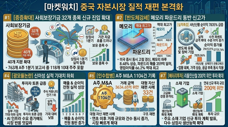 더지엠뉴스 구태경 기자 | 사회보장기금이 1분기 A주 시장에서 대규모 종목 편입과 지분 확대를 단행했다. 반도체와 메모리 산업이 AI 수요를 기반으로 실적 급증과 가격 상승 흐름을 이어갔다. 탄소 평가 체계 도입과 첨단 제조 성장으로 중국 산업 구조 전환이 가속됐다.