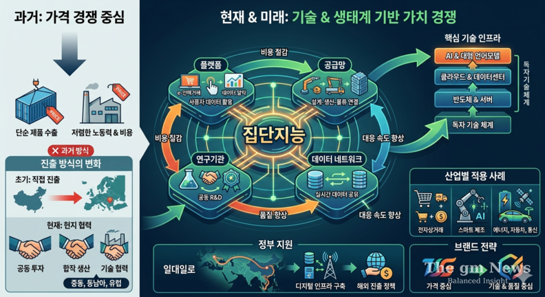 더지엠뉴스 김완석 기자 | 중국 기업의 해외 진출 전략이 가격 경쟁 중심에서 기술과 생태계 기반의 가치 경쟁으로 이동했다. 인공지능과 데이터 협업을 결합한 집단지능 모델이 핵심 축으로 자리 잡으면서 글로벌 시장 공략 방식 자체가 다시 짜이고 있다.